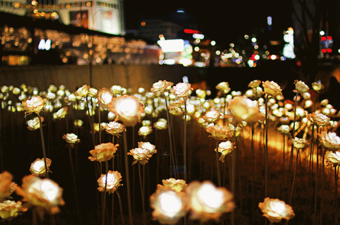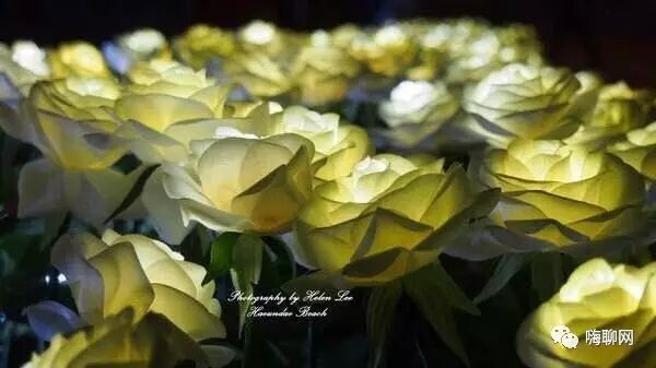 成千上万朵玫瑰花灯同时开启