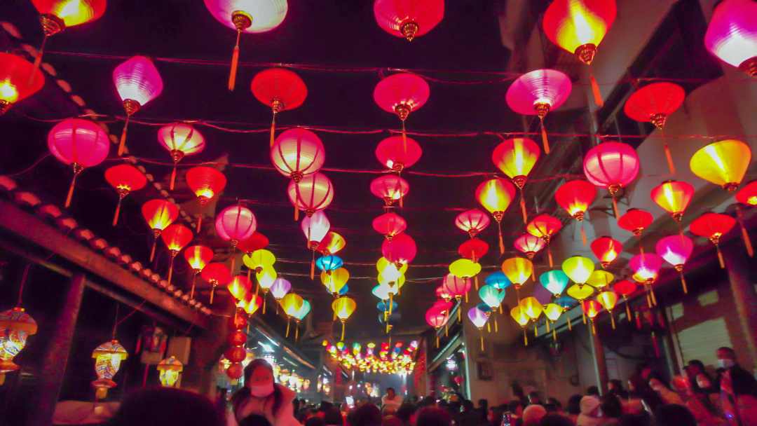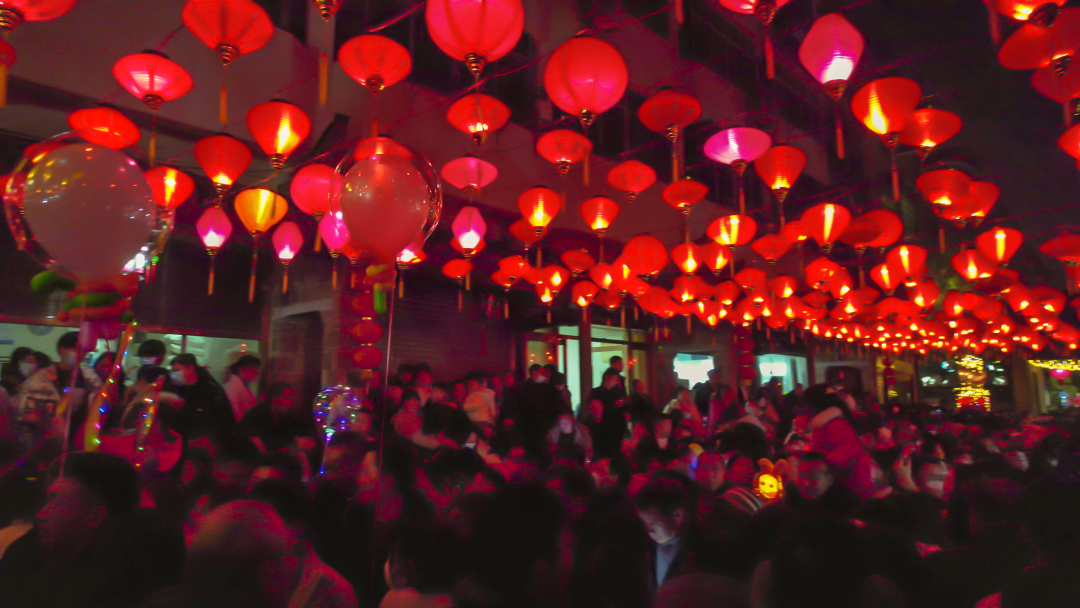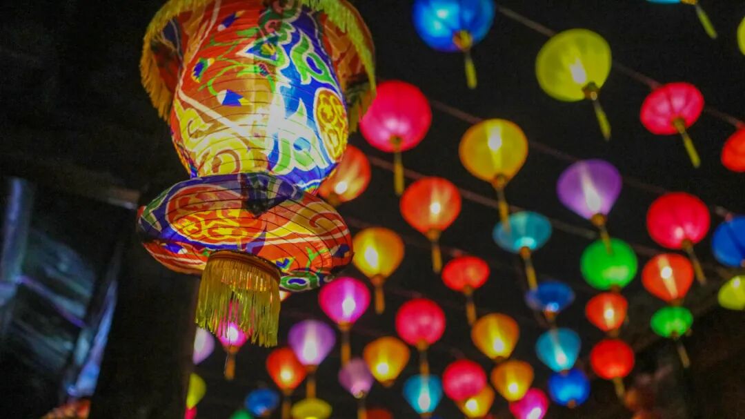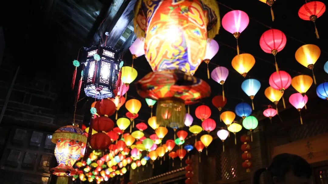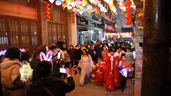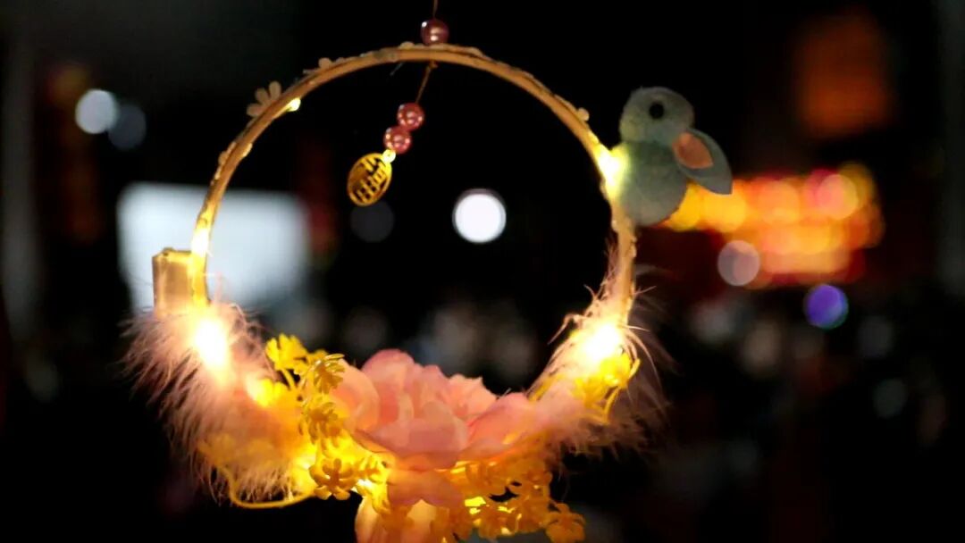不少市民朋友身着汉服拿着各种造型独特的花灯吸引游客驻足围观
