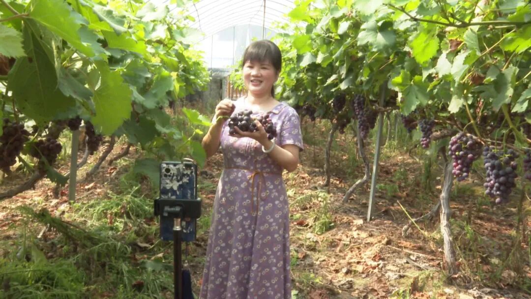 一部手机,一台支架,葡萄园成了直播间。主播正在与网友积极互动,向网友热情推荐基地里各个品种的葡萄,本地网友更是直接驱车前往基地,现场体验采摘的乐趣。