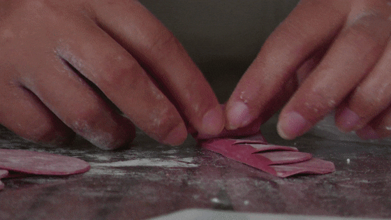 花馍看着简单,但是工序却十分复杂。为了满足不同客户的需求,卢芸在花馍制作前都会进行创作构思,反复研究尝试后,才开始制作。她以面粉为料,以手为艺,一块块看似普通的面团,经过揉、捏、搓、拉、盘、剪等动作,不一会儿就变身成为惟妙惟肖的玫瑰花花、福袋、石榴等各式各样的花馍。