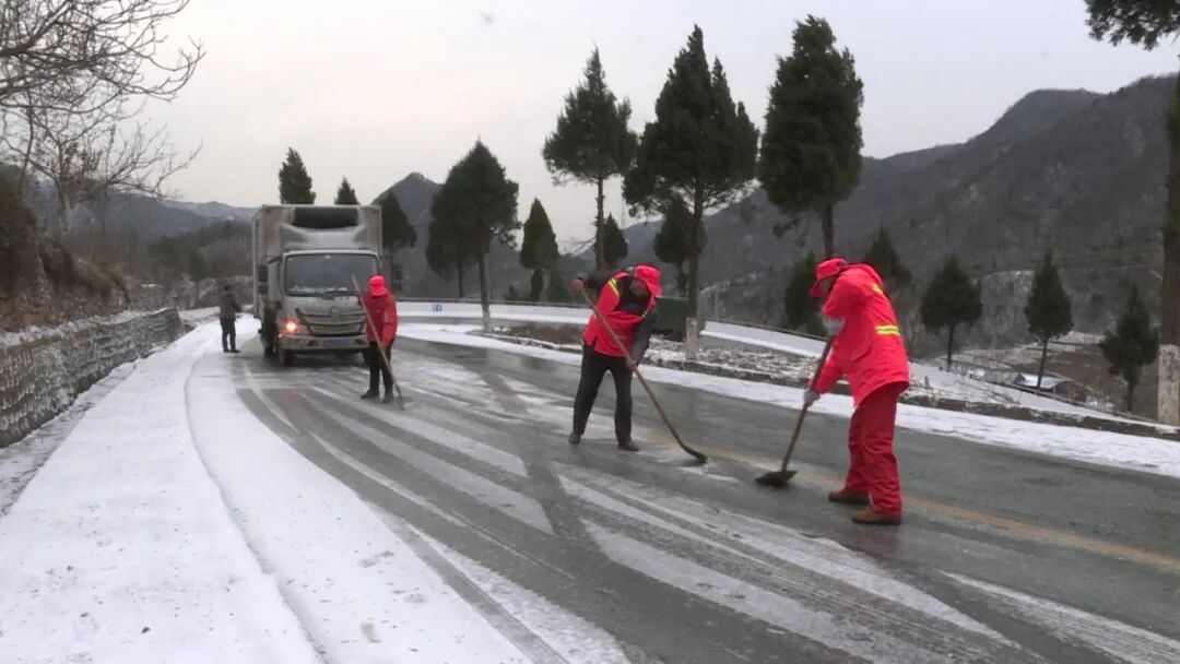 绞肠关是242国道郧西境内海拔最高的路段,12月15日出现积雪结冰,县公路养护部门组织上津、香口、土门等公路养护站20多名工作人员,出动3台除雪车,第一时间赶赴现场撒布融雪剂,清除路面冰层。