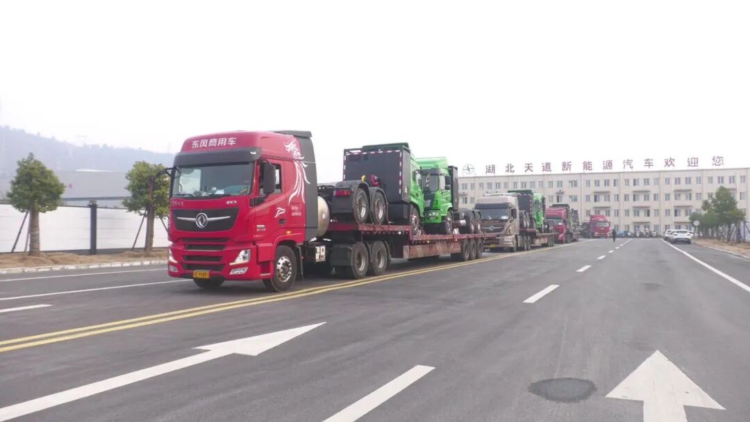 近日,湖北天道新能源汽车制造有限公司,新一批生产的新能源汽车发往成都和山东。