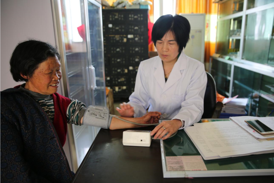 羊尾镇张家河村村医王改每天都要对全村的慢性病人进行一次回访。过去,村民出山就医难,医生入户服务也难。现在,医生上门服务成为常态,以前王改把村子几十户慢性病人看完得两天,现在她骑摩托车往返半天就可把病人看完。测血压、检血糖,王改到村民家中以后,熟练地为群众开展健康监测,按需开药。