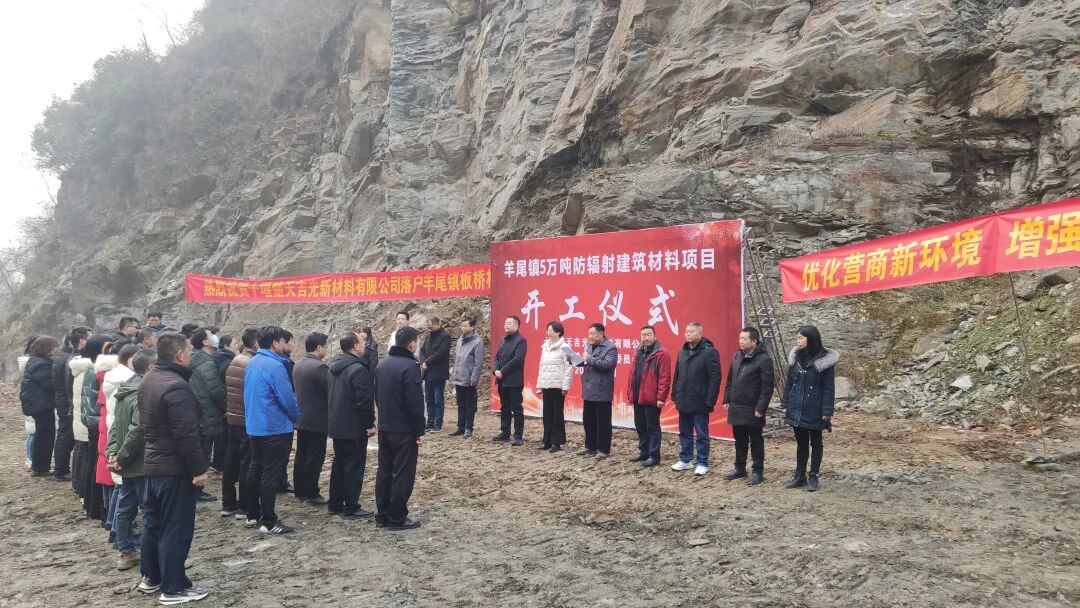 1月10日,十堰楚天吉光新材料有限公司五万吨防辐射建筑材料生产项目,在羊尾镇板桥村三组正式开工.