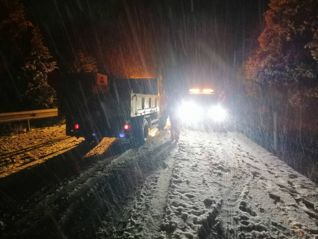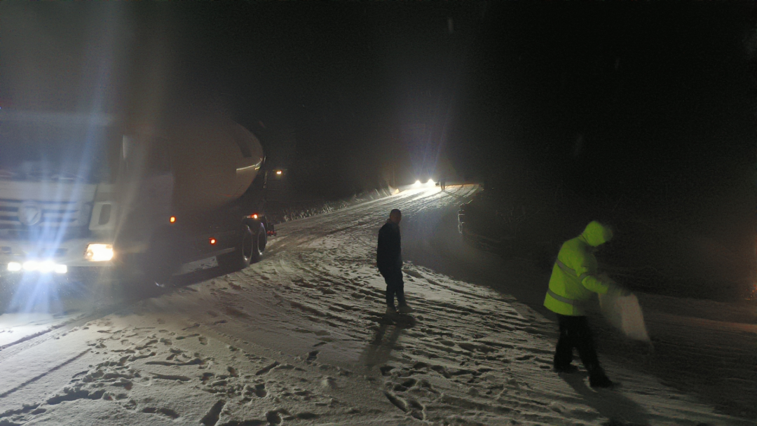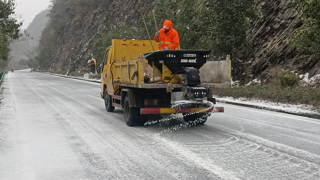 1月18日晚,我县境内出现大面积降雪,致使S301列养干线火车岭路段路面出现积雪,县公路养护中心第一时间启动应急预案,出动应急抢险人员30人次,道路巡查指挥车2台次,融雪撒布机2台次,使用融雪剂10吨,经过近三个多小时的连续奋战,有效缓解路面冰冻状况,为群众安全出行保驾护航。
