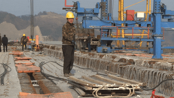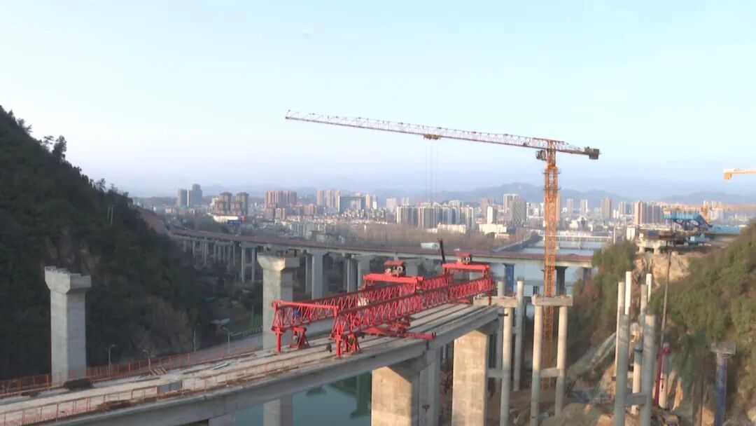 1月17日,寒风凛冽,记者在十巫北高速公路郧西段汉江特大桥施工现场看到,工程车穿梭不断,工人们正埋头苦干、抢抓工期,给高速建设按下“快进键”。