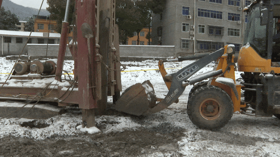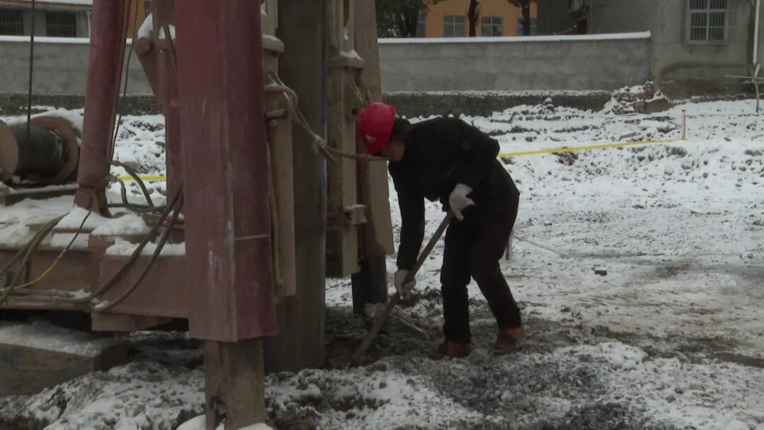 在桩基施工现场,挖掘机往来穿梭运送着石料,六台打桩机在风雪中同时作业,敲击声、焊接声、机器轰鸣声,奏出一曲红火的奋进乐章。二十多位建筑工人不畏严寒,忙碌在高耸林立的打桩机之间,为三月底厂房车间交付使用打下基础。