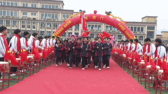 当天下午,在郧西一中操场上成功门巍然矗立红旗飞舞,鼓声隆隆,口号震天处处洋溢着青春的气息,高三各班励志标语高高举起令人振奋。