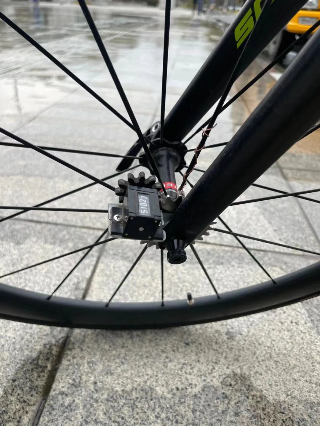 3月29日晚,在本次赛事起点十堰市奥体中心前,续飞老师和堰马组委会在公路自行车前轮安装了琼斯计数器,并进行测前标定,做好丈量前的准备工作。