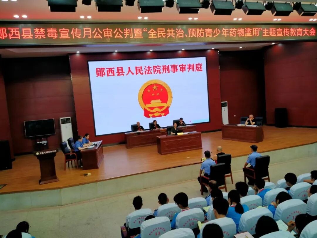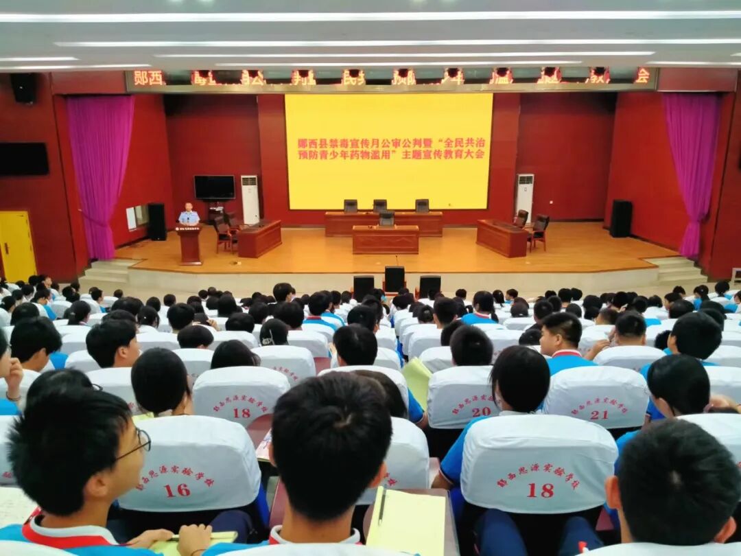 24日当天,郧西县禁毒办还联合县公安局、县法院、县检察院、县教育局、县妇联,在思源中学举办毒品犯罪公审公判大会暨“全民共治、防范青少年药物滥用”禁毒宣传活动。