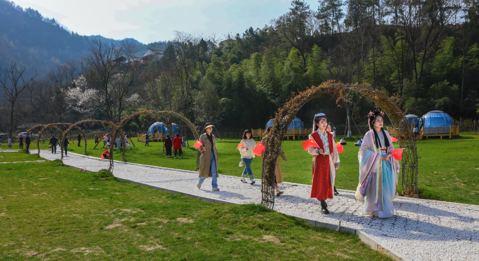 “我们借助刘家湾村独特的山水资源,在天河之畔打造了云栖小院,包括自助烧烤、咖啡茶饮、农家饭菜、亲子非遗体验四个板块,吸引了众多从县城和十堰市区的游客过来参观体验。开业两个月来,单日收入最多突破了一万元。”云栖小院负责人梅堃说。