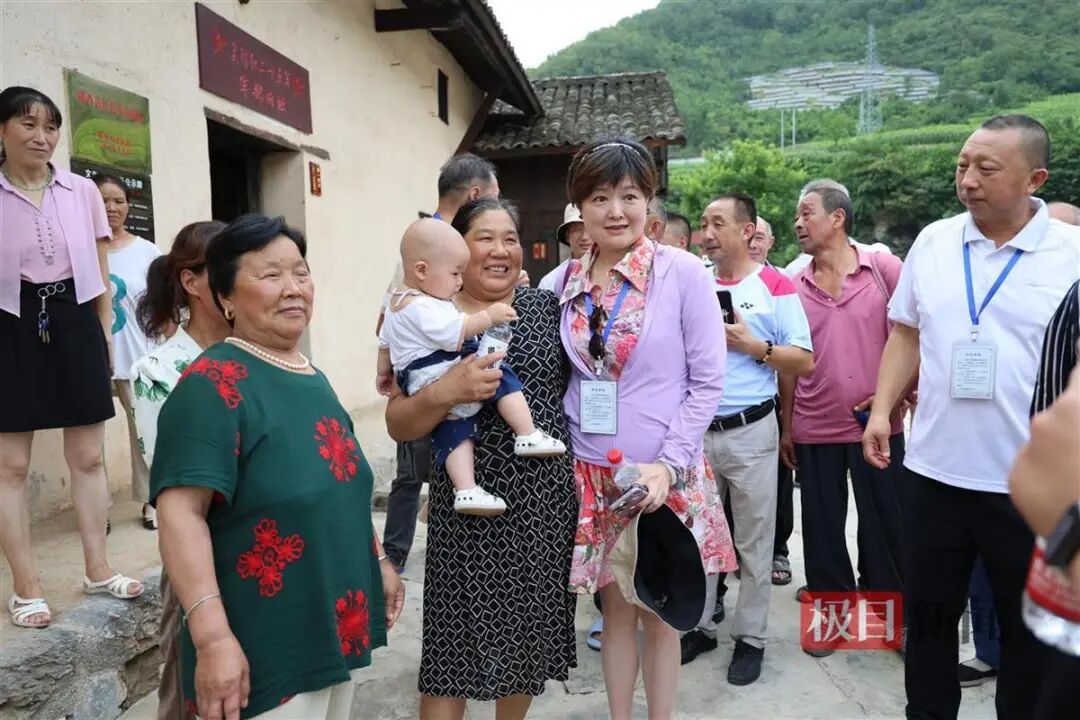 2024年8月10日,国家长征文化公园(郧西段)开园,徐海东外孙女徐梅梅(前右二)与当地群众合影