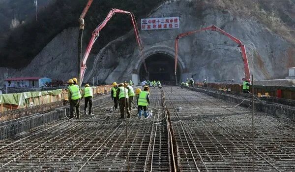 施工现场调度3台天泵和多个振捣棒同时作业,计划用24小时不间断完成混凝土浇筑工序,大桥顺利合龙为铺轨工程奠定了基础。