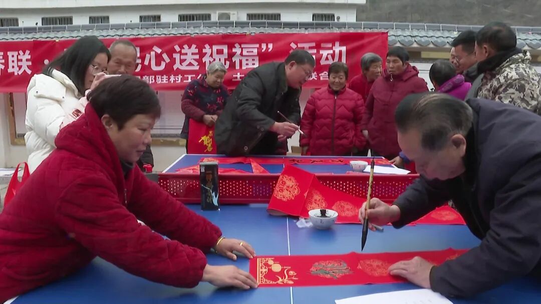 为弘扬中华优秀传统文化营造喜庆祥和的节日氛围。连日来,土门镇开展“春到万家”送春联下乡活动,县书法美术家协会的书法爱好者们,在该镇玉皇顶村为当地群众送去新春的第一份祝福。