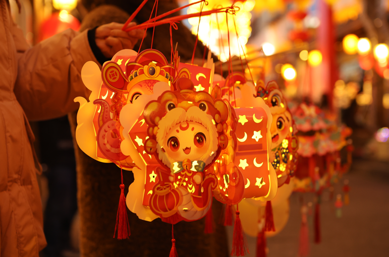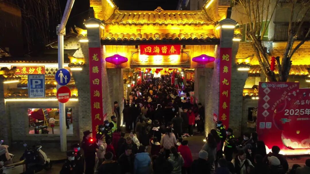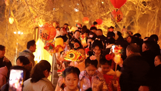 华灯初上,长达500米的老北街低碳文化街区被璀璨的灯火点亮,人头攒动,热闹非凡。造型绝美的彩灯高高悬挂,夜色为幕,光束作画,每一处景致都富有美好寓意,每一盏彩灯都饱含深情祝福,为新春佳节增添了无尽美感和热烈气氛,展现出一幅“火树银花不夜天”的年俗风情画卷。