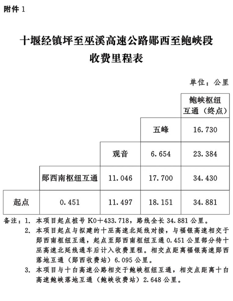 日前,湖北省人民政府发布关于十堰经镇坪至巫溪高速公路郧西至鲍峡段,设站收费有关事项的批复郧西至鲍峡段(十巫北),定于3月7日零时开通。
