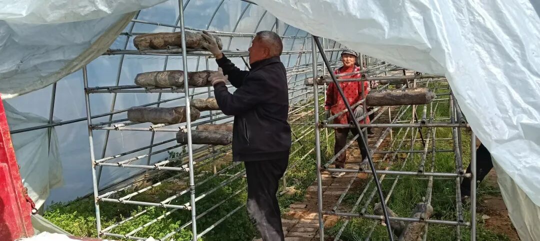 “真没想到,在家门口就能挣上钱,我一天下来能挣200块钱,一个月能挣2000多块钱,不比在外打工赚得少,还可以照顾到孩子。”正在大棚内上架菇棒的村民郑姐开心地说道。