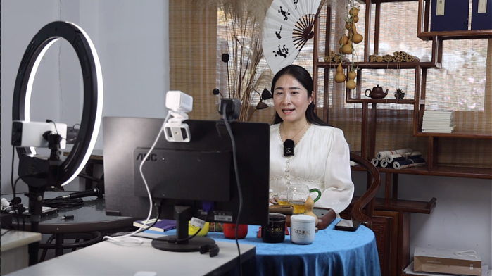 清明刚过湖北七夕茶业生物科技有限公司直播间里主播正在推介刚刚出产的新茶“怡美人”