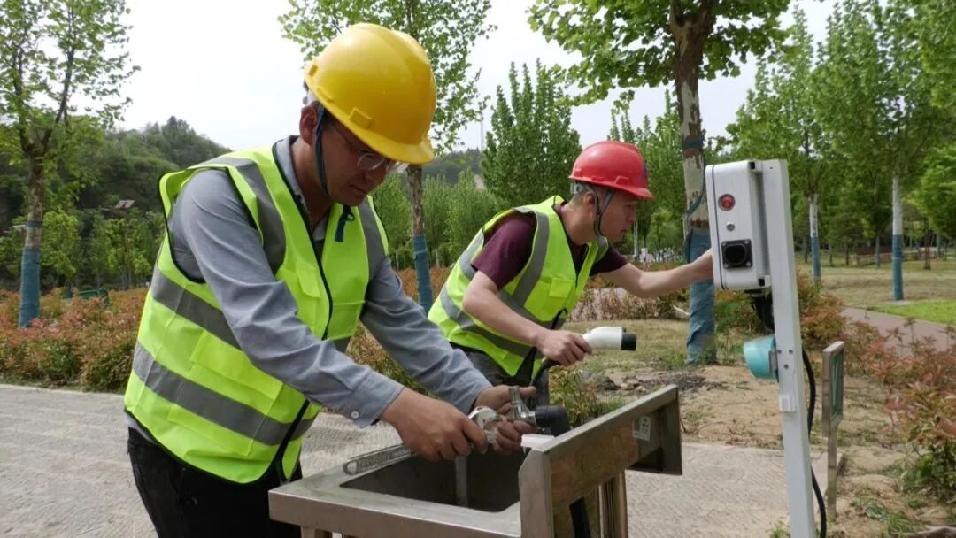 在天河口湿地公园,工作人员穿梭于园区内各个路段草坪绿植之间,清理杂草、清除白色垃圾、浇水灌溉,让公园内的植被能够获得充足的水分滋养。