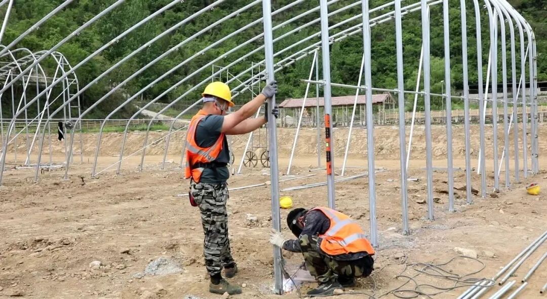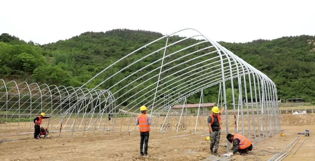 “星河绿色生态谷正在进行日光温室骨架安装,骨架使用的材料是热镀锌椭圆管,镀锌可增加钢管的抗腐蚀能力,延长使用寿命,预计5月底骨架完成安装。”湖北星河智慧农业科技有限公司董事长谢守俊向记者介绍道。当前正值温室主体结构施工黄金期,为确保工期顺利完成,五一期间不放假,日光温室、玻璃温室、薄膜联动温室采用各自3个班组同步交叉施工,共享菜园和环境治理也同时施工,较原计划提速20%。