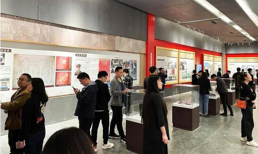图为郧西县鄂豫陕革命根据地纪念园游客正在参观红二十五军转战郧西时的历史故事。郧轩文摄
