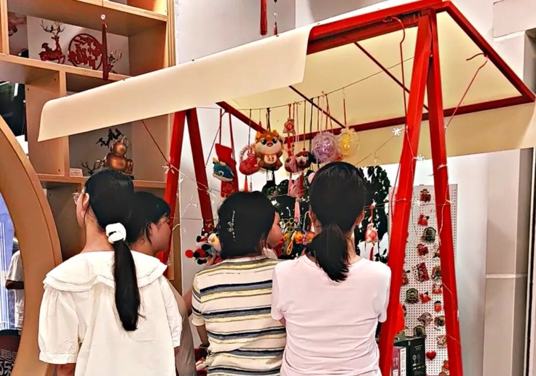 儿童玩具区和IP手办区是孩子们的乐园。各种造型可爱的七夕主题玩具,如牛郎织女冰箱贴、鹊桥拼图等,让孩子们在玩乐中了解七夕文化。热门的动漫、游戏IP手办也深受年轻人喜爱,摊位前常常围满了挑选的顾客。