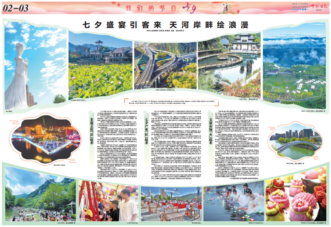 8月25日,《十堰日报》专版刊发《七夕盛宴引客来 天河岸畔绘浪漫》,聚焦我县以“星河筑梦・家国同心”为主题,打造文旅盛宴,让郧西非遗文化“活”起来七夕产业“旺”起来文旅市场“火”起来。