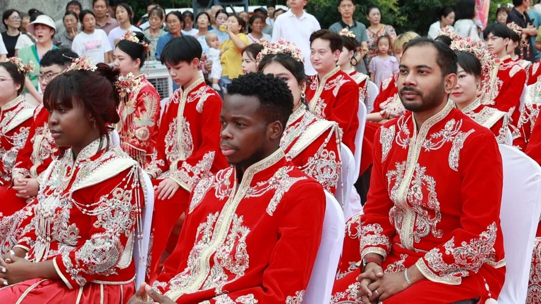 据了解,本次婚礼的77对新人,既有来自北京、重庆、武汉、宜昌、襄阳等天南海北的国内青年,也有来自孟加拉国、摩洛哥、坦桑尼亚、马拉维、喀麦隆等国的国际友人。