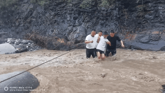 7月10日下午,黄和平正陪同省应急管理厅领导在香口乡实地核查灾情时,接到孟川村村民夏芳求救电话,得知其丈夫与儿子在返村途中被洪水围困,有着军旅生涯和公安工作经历的他果断决定带队救人,抵达现场后指导救援人员采用绳索救援法稳步推进,最终成功转移两名被困人员。