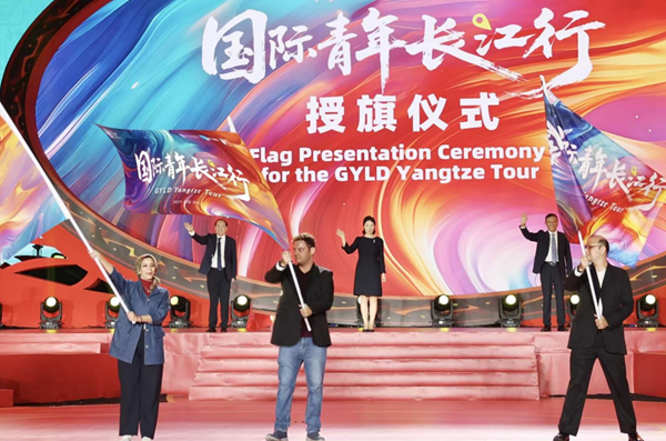 9月20日晚,首届“国际青年长江行”授旗仪式在湖北荆州举办。马尔代夫青年赋能、信息和艺术部国务部长阿里·萨曼,阿根廷前科技创新部部长、伊比利亚美洲科技创新研究中心主任丹尼尔·菲尔穆斯在授旗仪式致辞。中国外文局副总编辑、当代中国与世界研究院院长李雅芳,湖北广播电视台党委委员、副台长何伟,荆州市委常委、组织部部长胡斌共同为青年代表授旗。