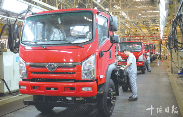 位于张湾区的湖北三环汽车有限公司整车工厂车间内,一台台轻卡专用车陆续下线。张启国 刘刚 摄