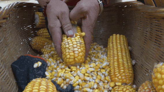 “剥玉米”比赛现场,参赛选手手指翻飞,有的三排并作一排剥,有的用双手左右拧搓,使巧劲将玉米粒一颗颗剥离剥落,争分夺秒进行限时5分钟的“冲刺”,吸引不少游客走近观看。