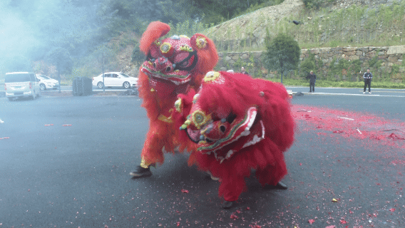 当天一大早,宁静祥和的家竹村在锣鼓喧天、炮竹阵阵声中突然变得热闹起来,舞狮队挨家挨户为村民送祝福,表演者在锣鼓音乐的伴奏下,时而跳跃、扑腾,时而登高、翻转,不停地对着人群摇头摆尾、撒娇卖乖,欢笑声与喝彩声不绝于耳。