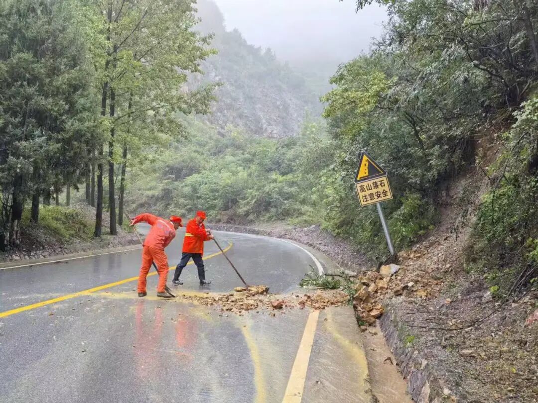 公路养护工人们冒雨坚守岗位