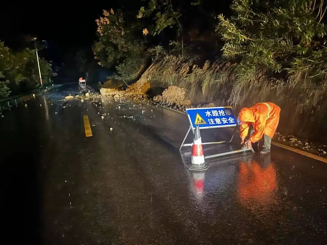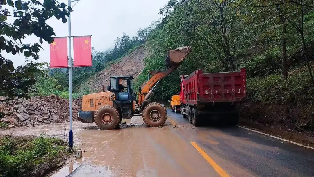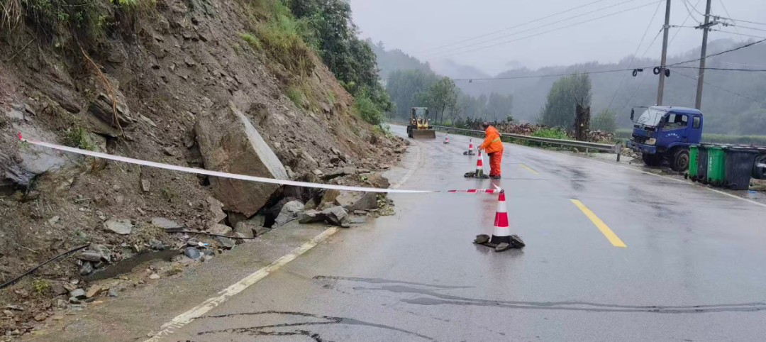 及时清理因雨塌方受阻路段