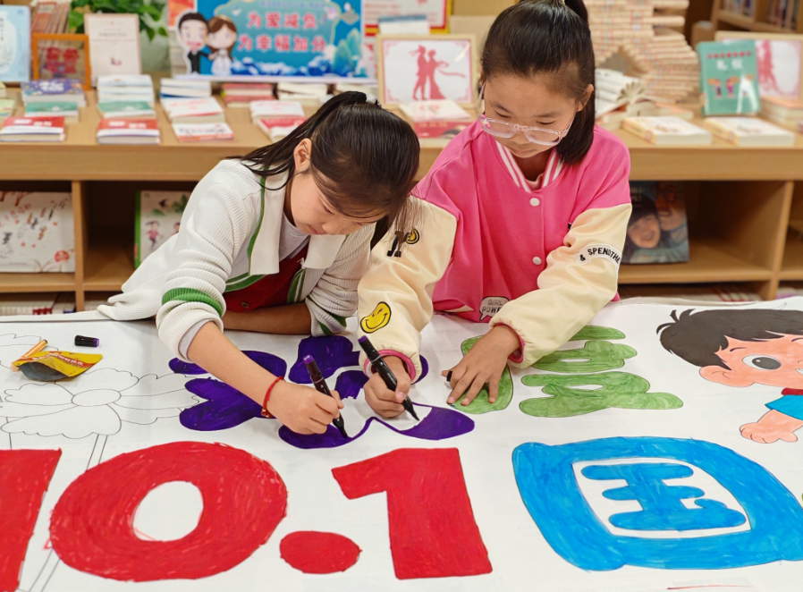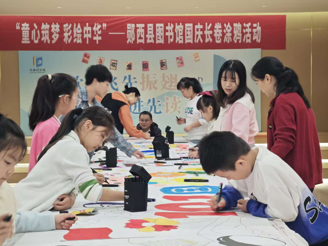 在“童心筑梦 彩绘中华”国庆长卷涂鸦活动现场,孩子们用五彩斑斓的画笔,描绘出对祖国最纯真的祝福。