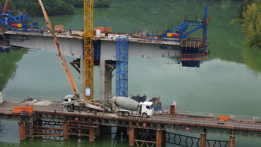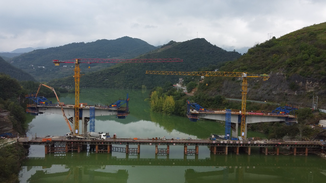 两夹路冷水河大桥现场施工负责人袁智介绍:“目前正在施工的是二号桥墩连续钢构主梁挂篮的六号节段浇筑,一号桥墩连续钢构主梁挂篮已经完成七号节段浇筑,到这个月底将进行一号挂篮的八号节段浇筑、二号挂篮的七号节段浇筑,到12月底开始全桥合龙。”