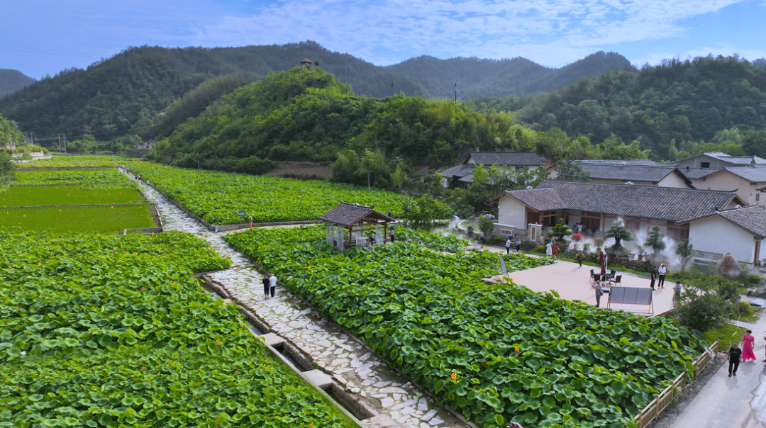 2022年,家竹村在村中心建了35亩的鱼藕共生园区。每到夏季,鱼藕共生园区荷叶田田,荷花绽放,与远山相映成趣,构成一幅灵动的山水画卷。游客或拍照留念,或驻足观赏,欢声笑语回荡在村子的每个角落。