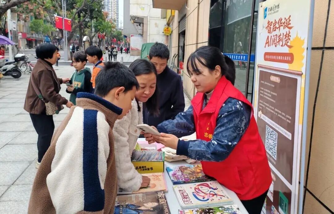 近日,县图书馆积极组织开展“智启华诞 AI阅荆楚”数字阅读推广活动,通过AI馆员服务体验趣味知识答题、AI伴读三大场景的深度融合,为读者搭建个性化、高效能的智慧阅读平台。