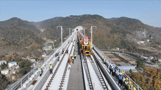 11月27日,西安至十堰高速铁路(西十高铁)全线铺轨施工圆满收官。此前,记者来到西十高铁郧西段轨道焊接施工现场,看到先进的移动式钢轨闪光焊轨机正在进行钢轨的“无缝对接”。这些钢轨的焊接完成,不仅标志着西十高铁郧西段建设进入轨道接通阶段,更意味着郧西迈入高铁时代的曙光近在眼前。