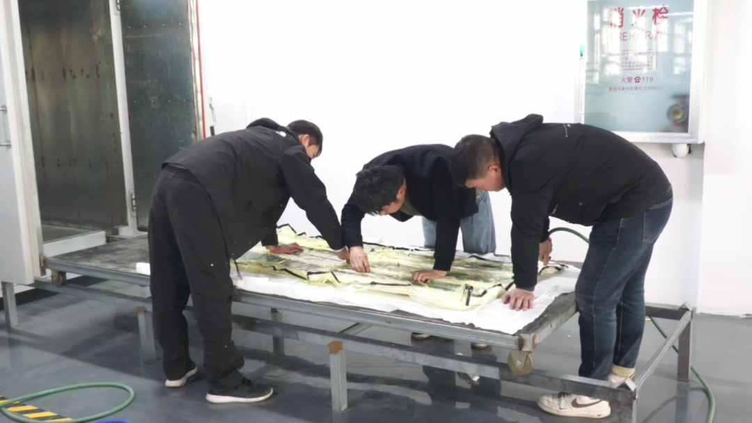 近日,记者走进云海航空科技有限公司生产车间复合材料成型区,工人们正专注地将一层层碳纤维铺叠进精密模具中,为无人机打造“骨架”,现场一派繁忙有序的生产景象。