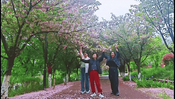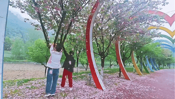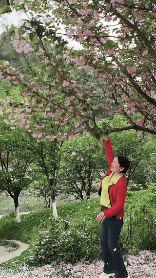 竟用力摇晃花枝制造“花瓣雨”
