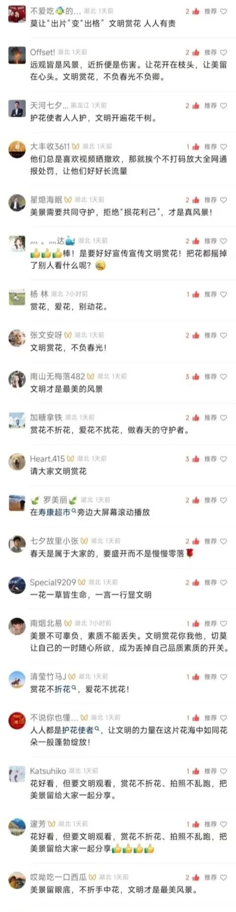 春光难得,花期有限。我们在此呼吁广大市民,踏青赏花时多一份爱惜、多一份克制,摒弃摇枝毁花等不文明行为,用镜头定格春日最本真的美好,共同守护这份满城春色,让文明与繁花一路同行。