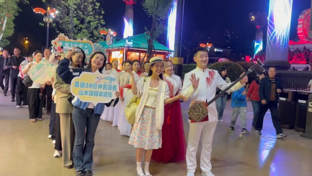 快闪大唐不夜城,以浪漫氛围燃动古都。郧西文旅团队在大唐不夜城开展主题快闪活动,悠扬婉转的唱腔、饱含特色的七夕文化元素,与大唐不夜城的盛唐风韵相映成趣。身着特色服饰的演员们,与市民游客热情互动,免费发放景区门票、旅游地图,邀请大家驻足合影打卡,吸引众多路人围观驻足、拍照分享,浪漫气息席卷整个街区,让郧西文旅的知名度在古都西安持续升温。